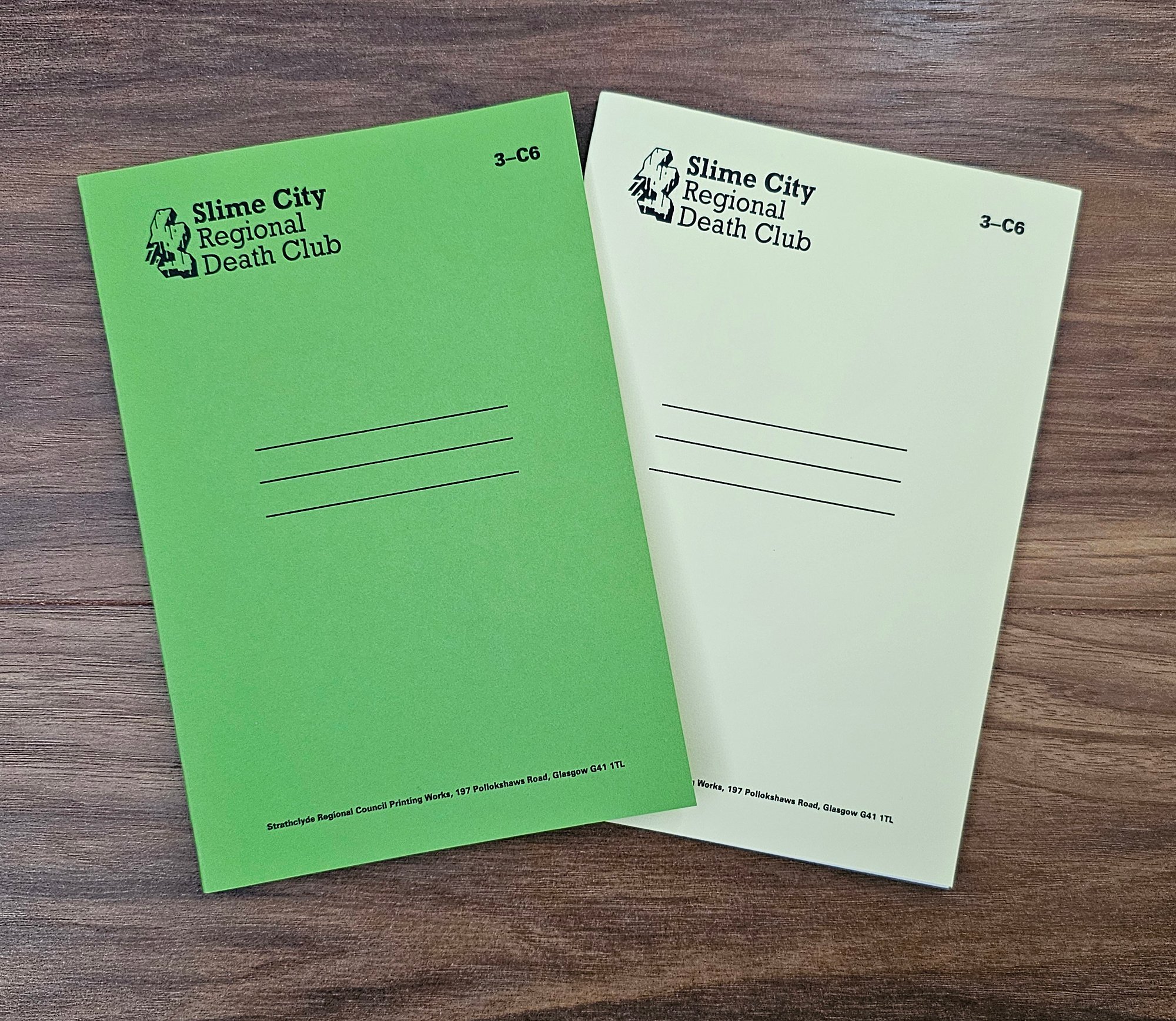 JOTTERS - Set of 2 SLIME CITY REGIONAL DEATH CLUB jotters (green & yellow)